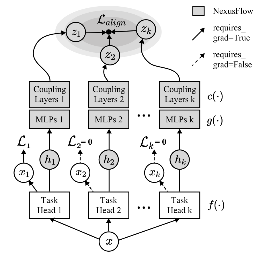 Can we learn across multiple tasks when Task 1 data is collected in region A and Task 2 data in region B? We introduce NexusFlow, a plug-and-play framework based on invertible flow networks that is effective for Partially Supervised Multi-Task Learning (PS-MTL) and the joint learning of diverse dense and sparse prediction tasks.